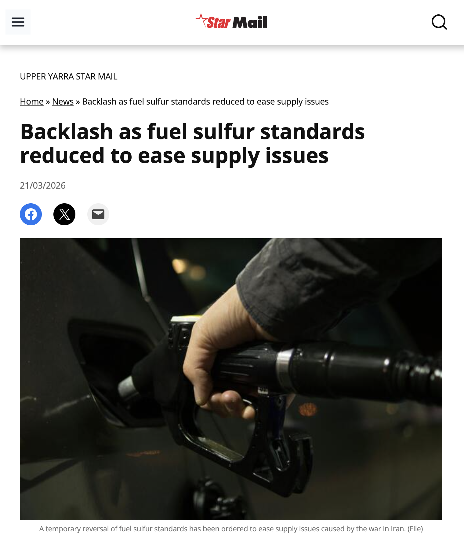Australia has temporarily relaxed the sulfur limit for petrol, not diesel.